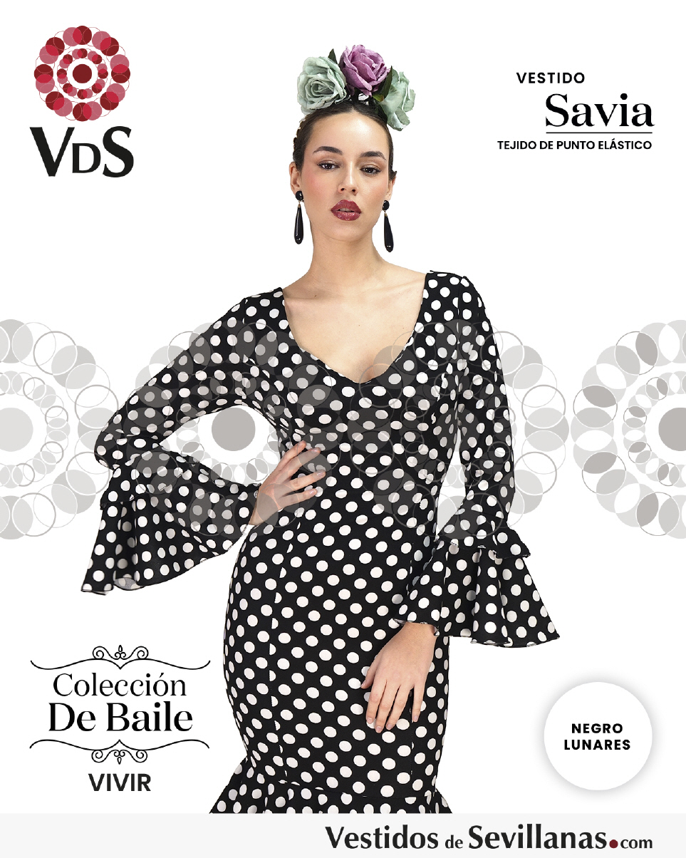 Traje SAVIA para baile un volante en la manga, falda con mucho vuelo tres volantes.