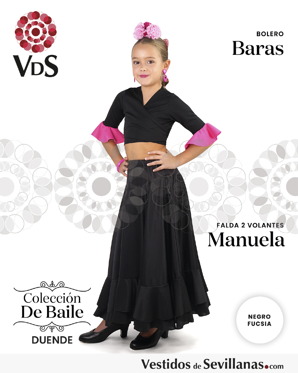 Falda MANUELA de capa entera con dos volantes, pieza triangular en la cadera para un perfecto ajuste.