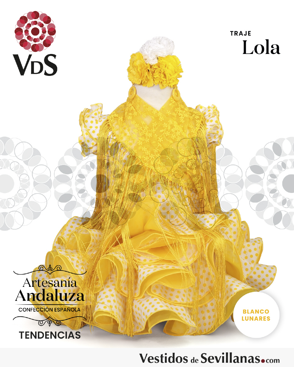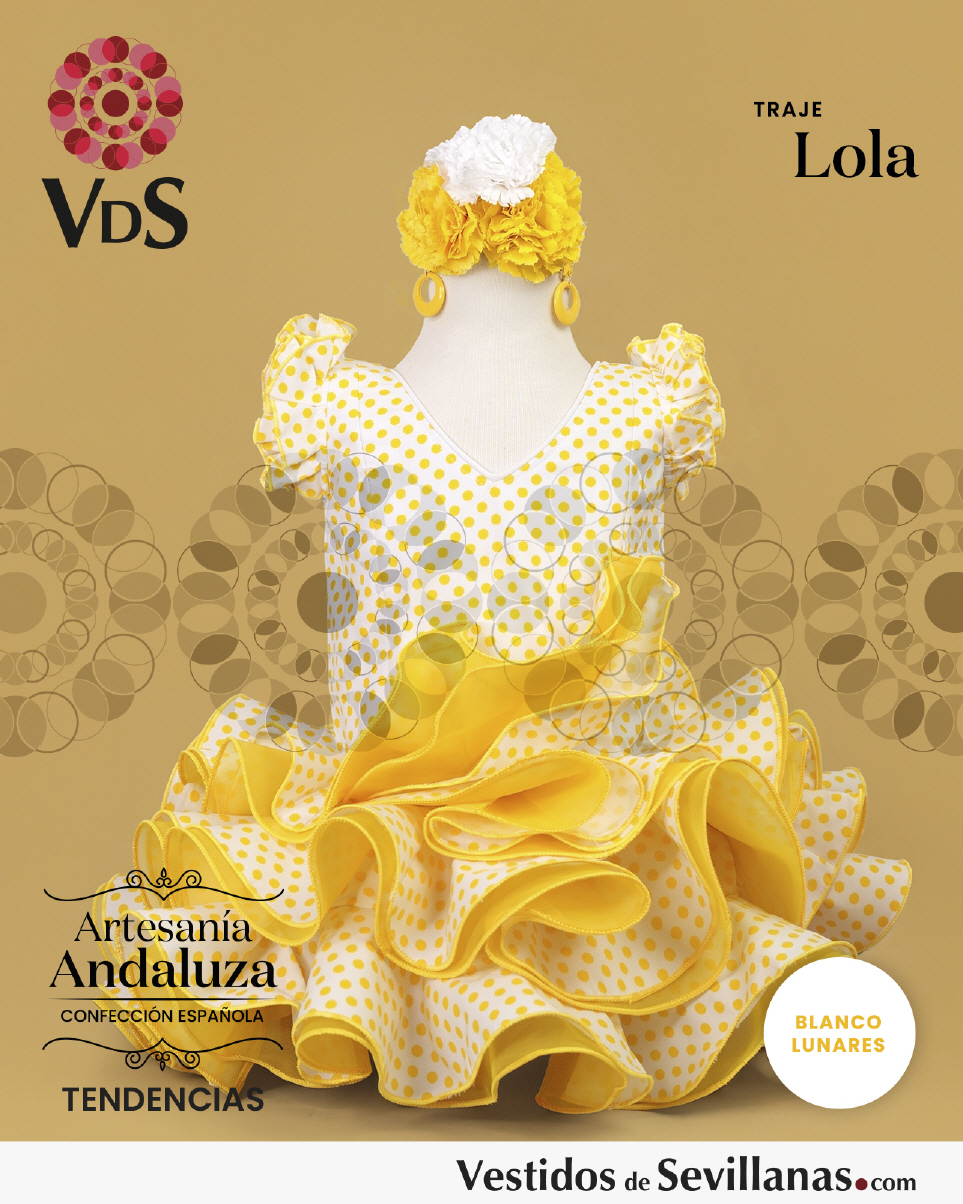 Traje de flamenca LOLA Corto Vestido entallado, falda sies volantes con organdí.