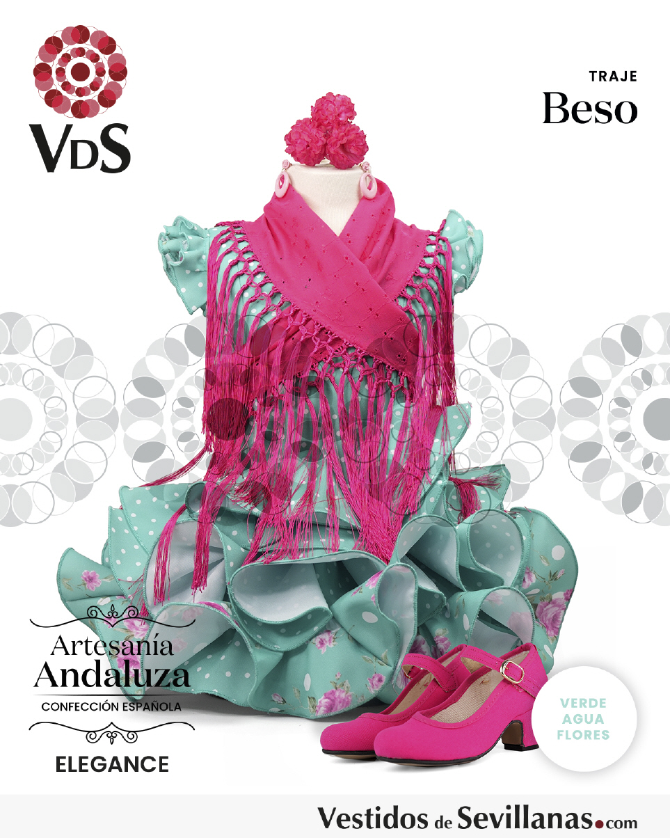 Traje de flamenca BESO Corto Vestido entallado, falda tres volantes con subida.