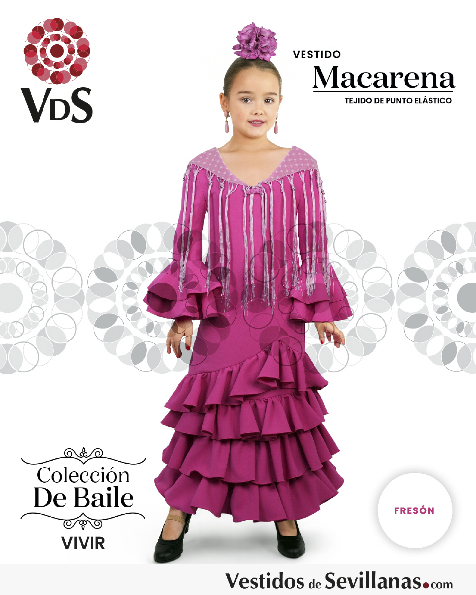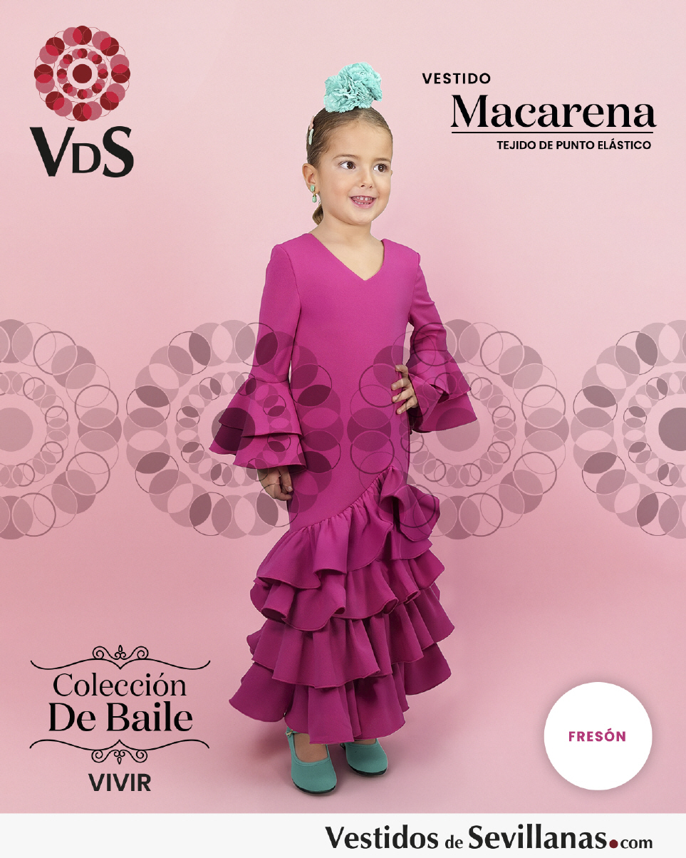Traje de baile MACARENA con manga, falda con 4 volantes con ubida.