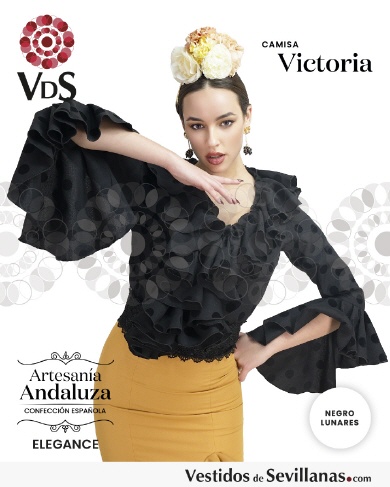 Camisa flamenca VICTORIA en strech, Lunares en Terciopelo.