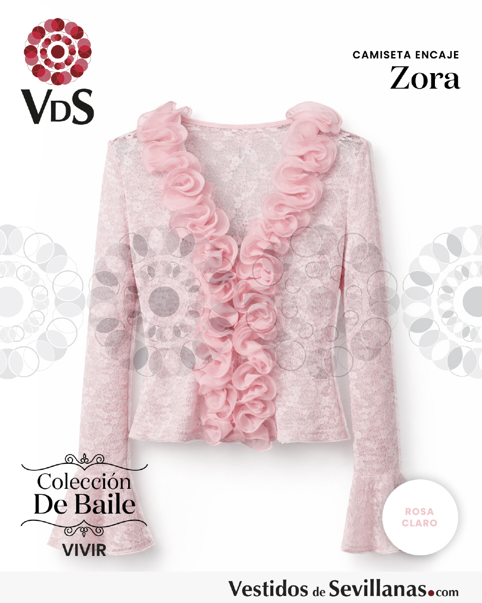 Camiseta ZORA, encaje elástico con dos volantes en el escote y en la manga.