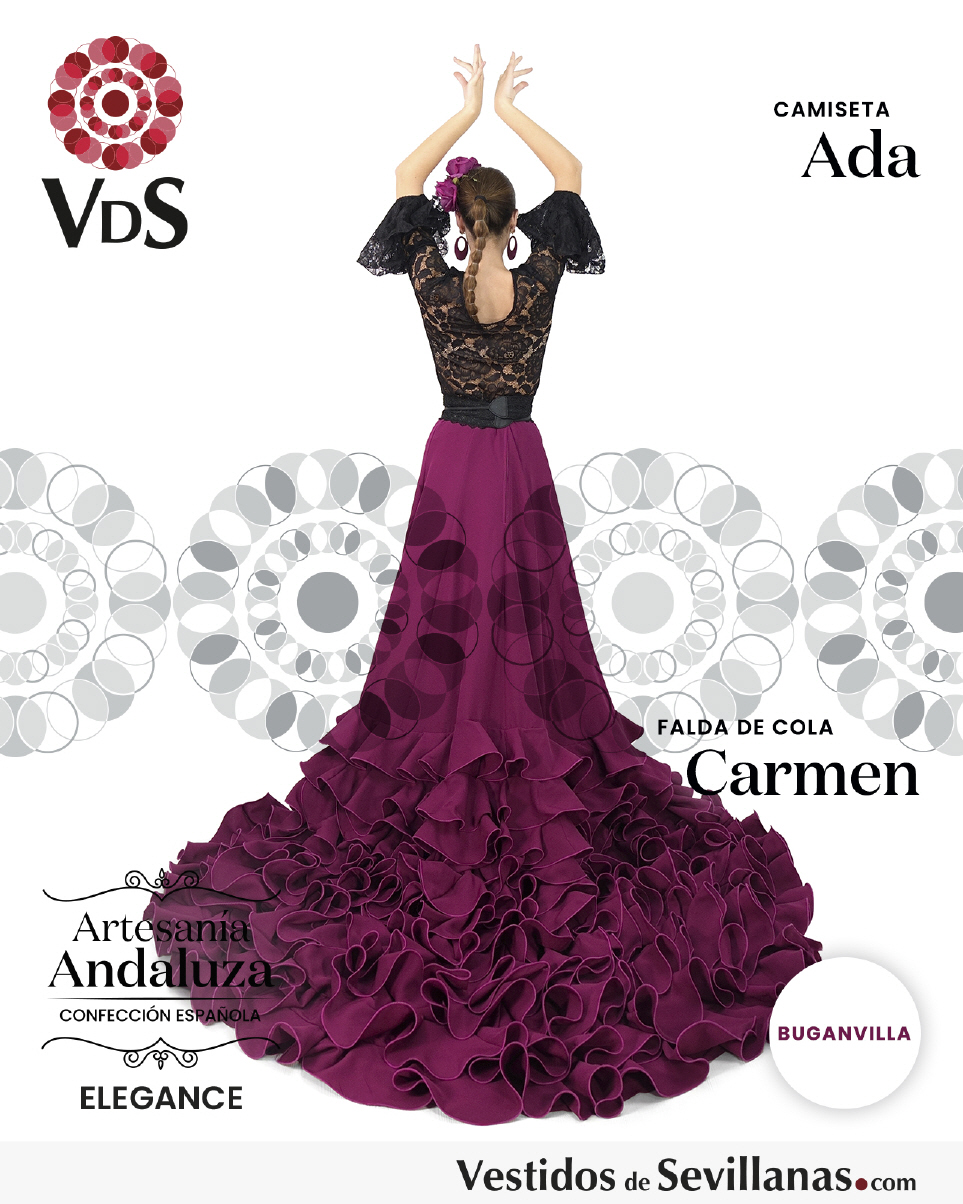 Falda de cola CARMEN para baile flamenco en color buganvilla.