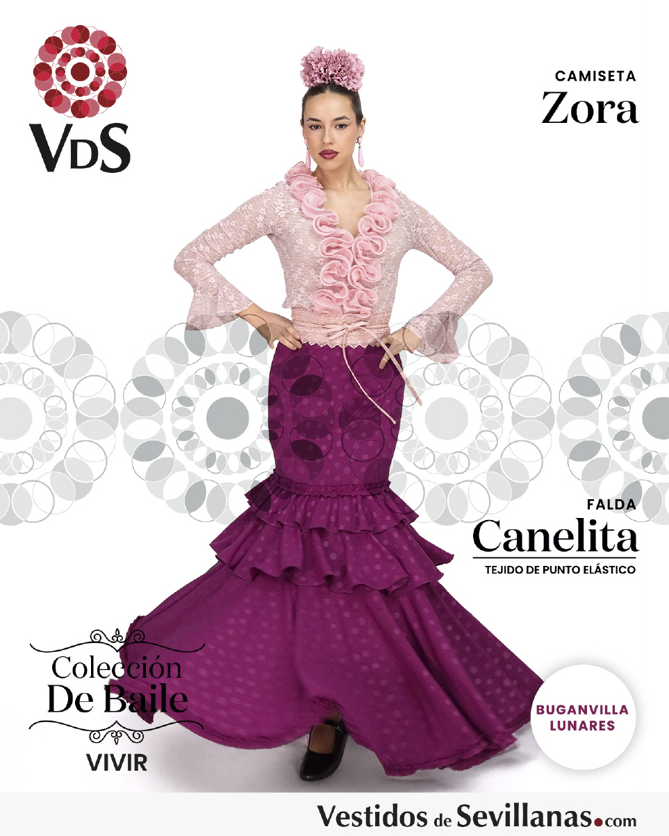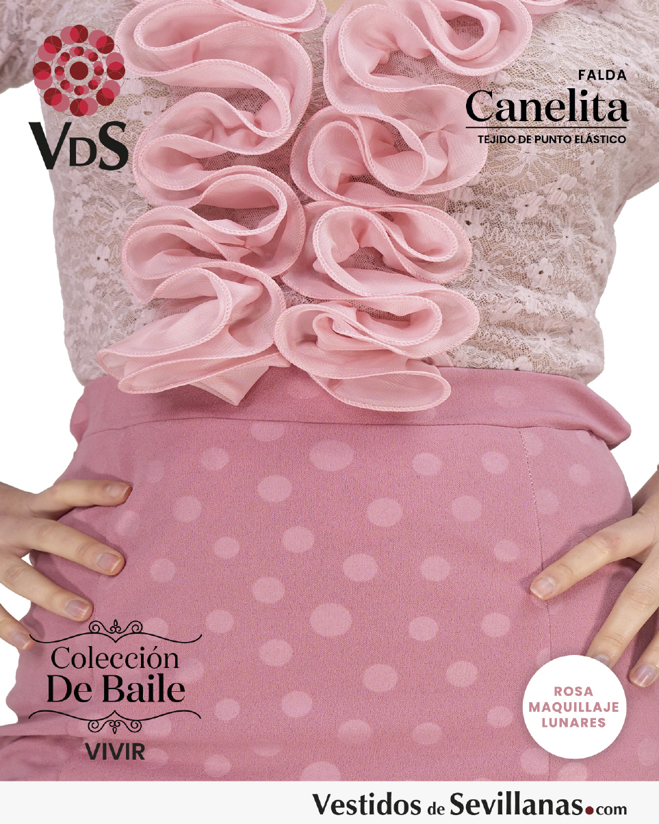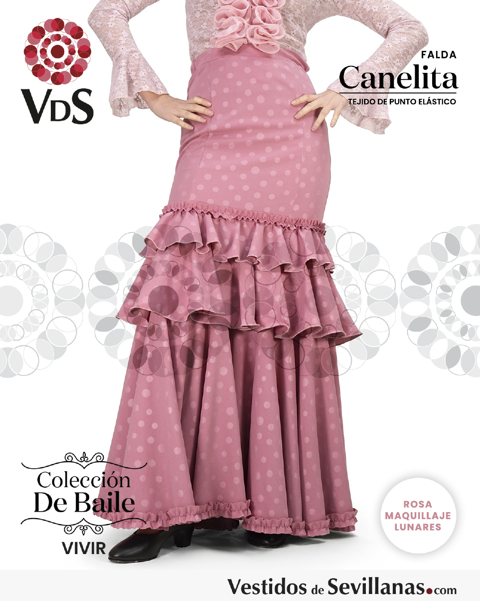 Falda elástica CANELITA. Falda entallada con 3Volantes y 2 Garruchas.