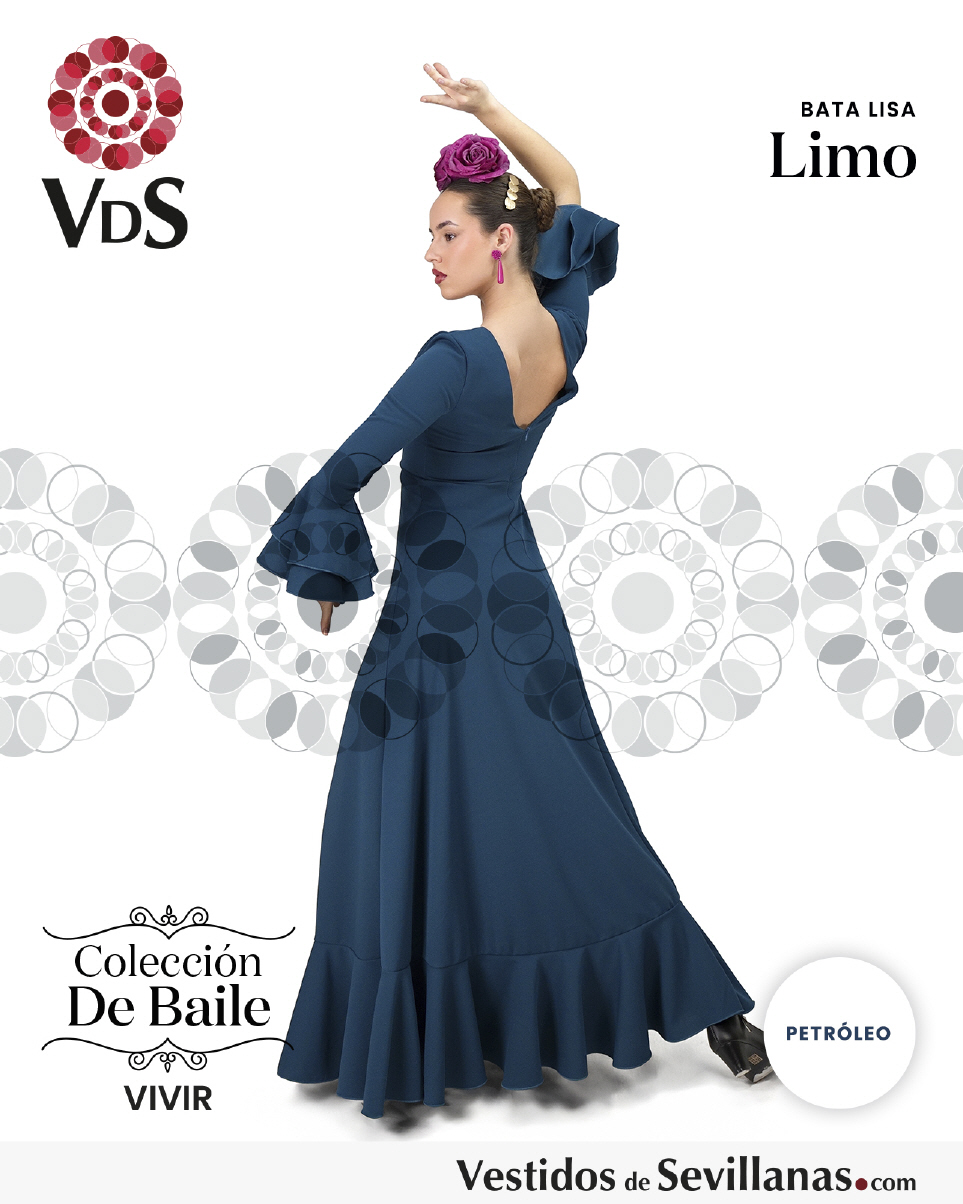 Bata de baile LIMO dosvolantes en la manga, falda con mucho vuelo y un volante.