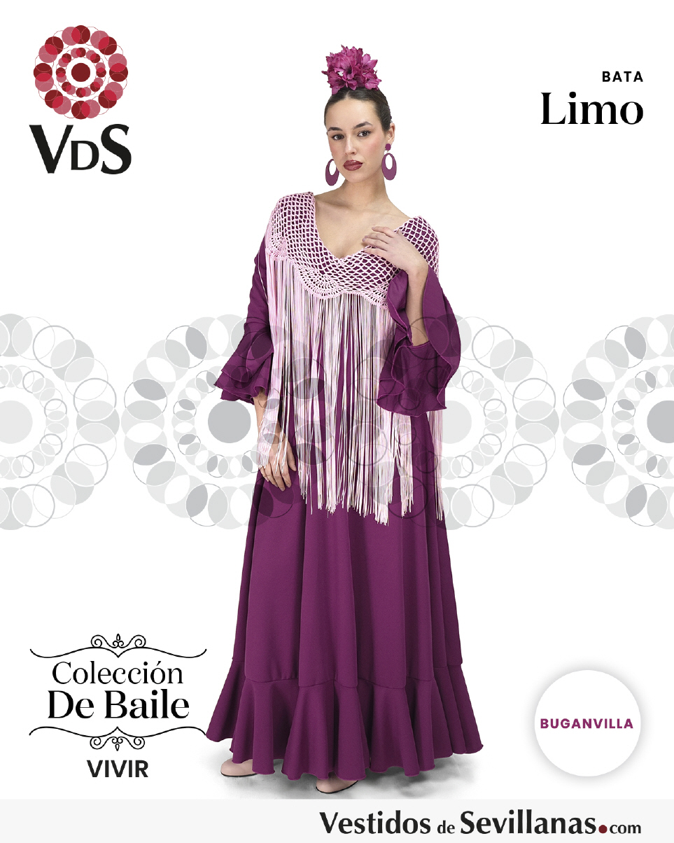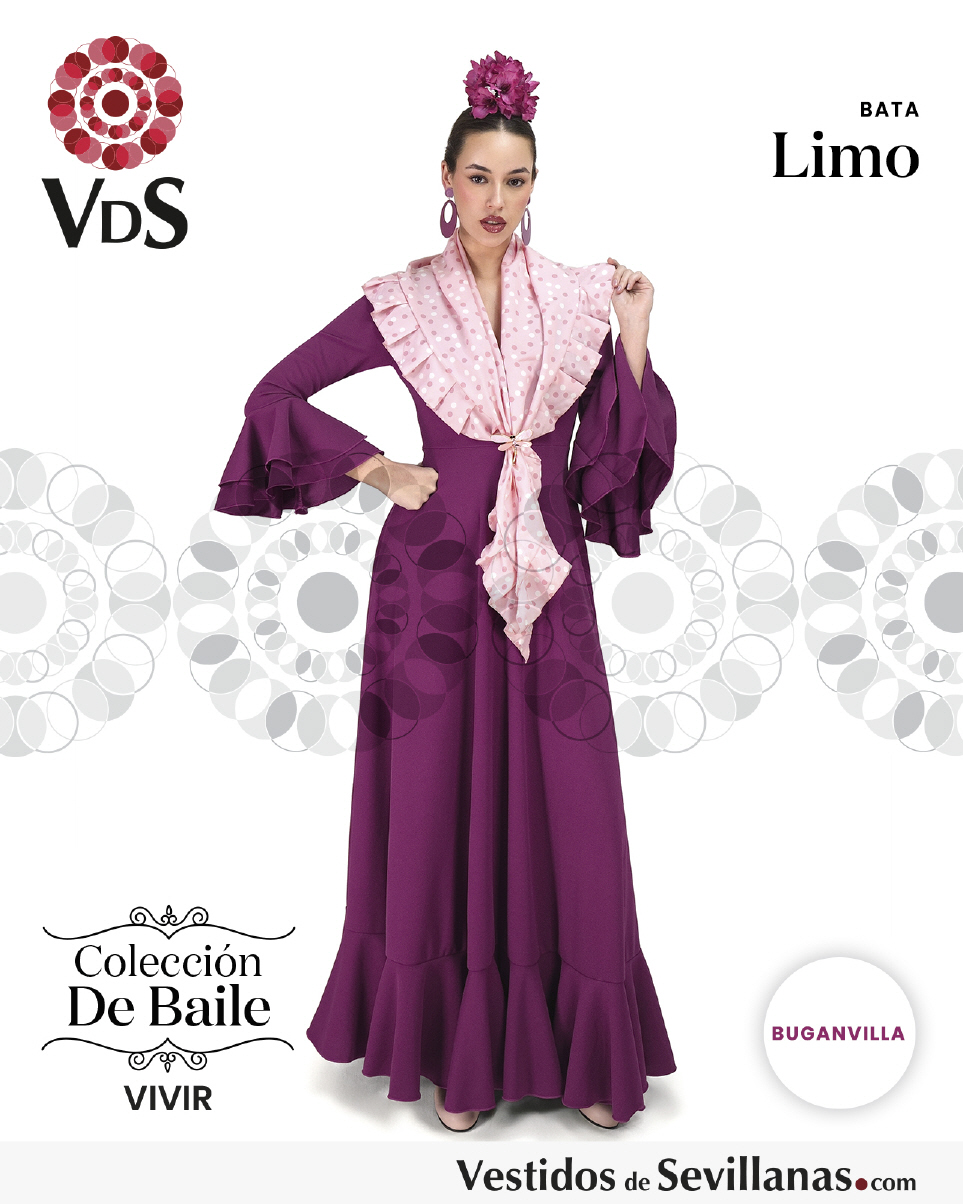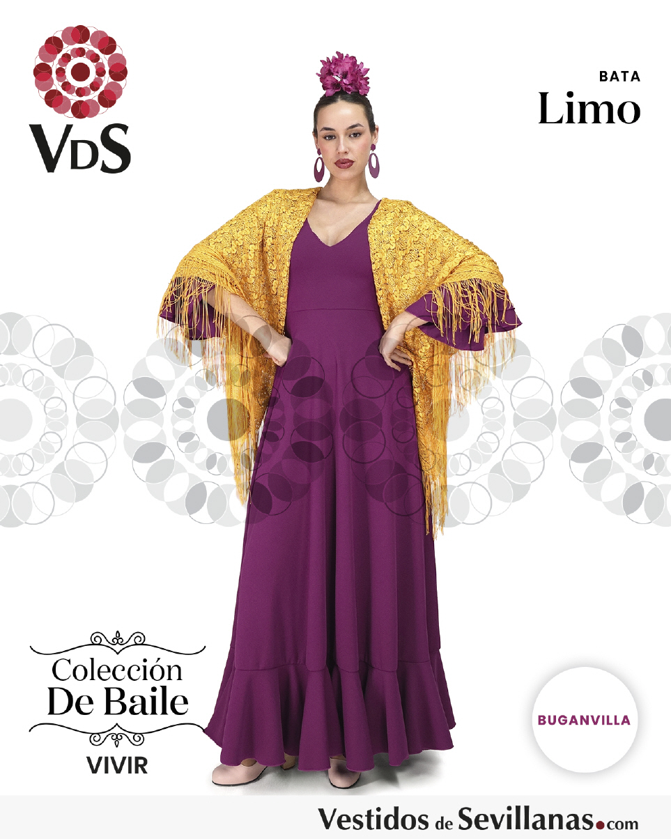 Bata de baile LIMO dosvolantes en la manga, falda con mucho vuelo y un volante.