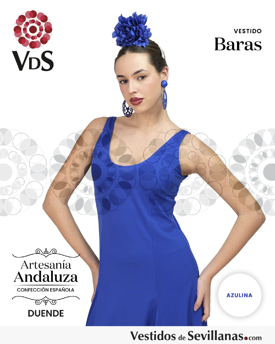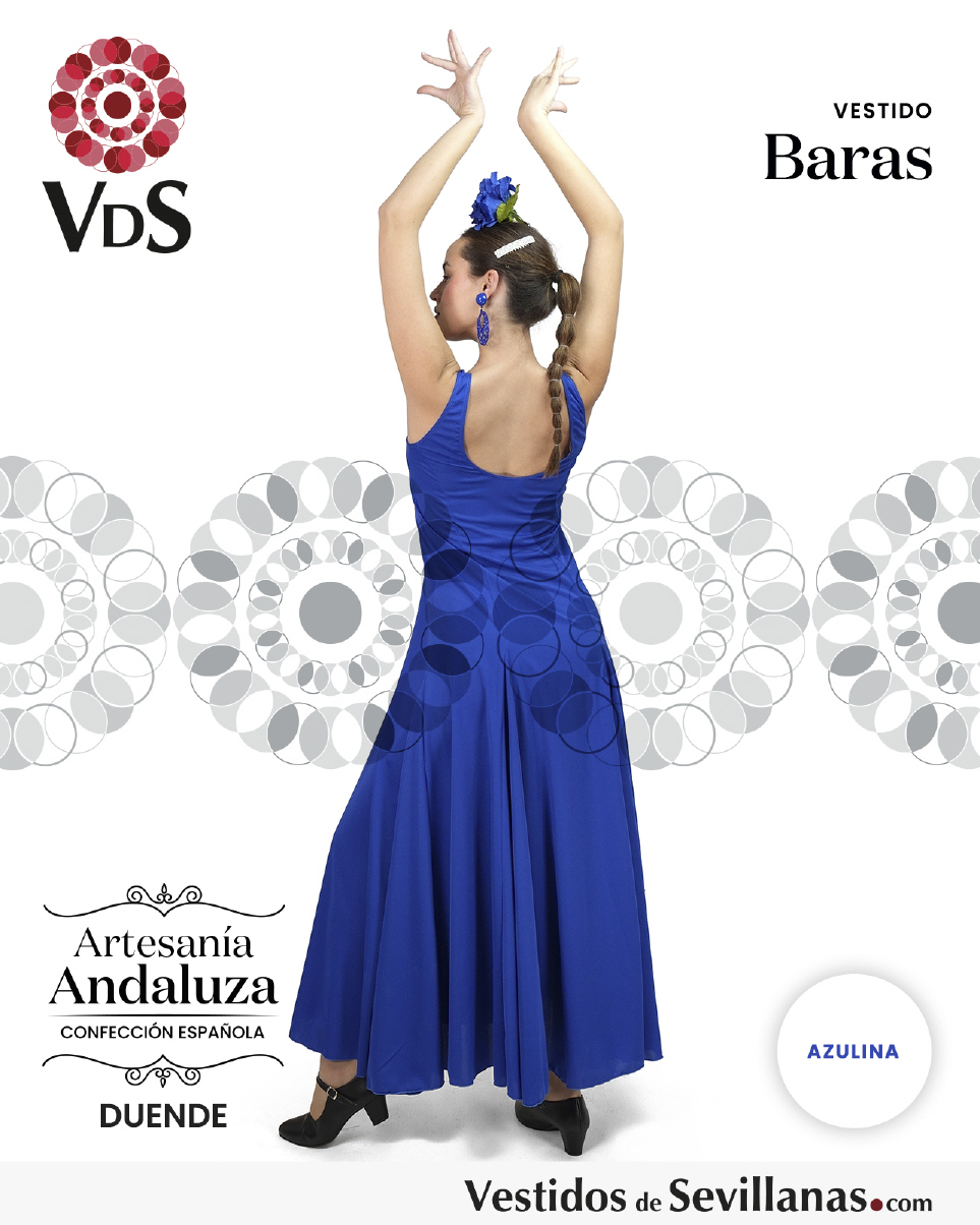 Traje de baile mujer colección BARAS (Regular Fit) vestido con tirante ancho, falda con seis nesgas con mucho vuelo. Vestido para baile flamenco, disponible en una amplia gama de colores diferentes. Tejido de punto indesmallable 100%poliéster.
