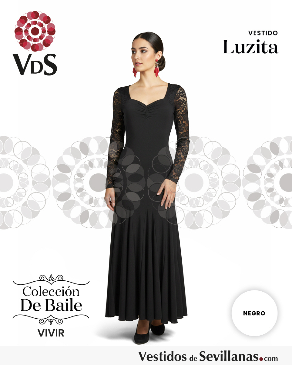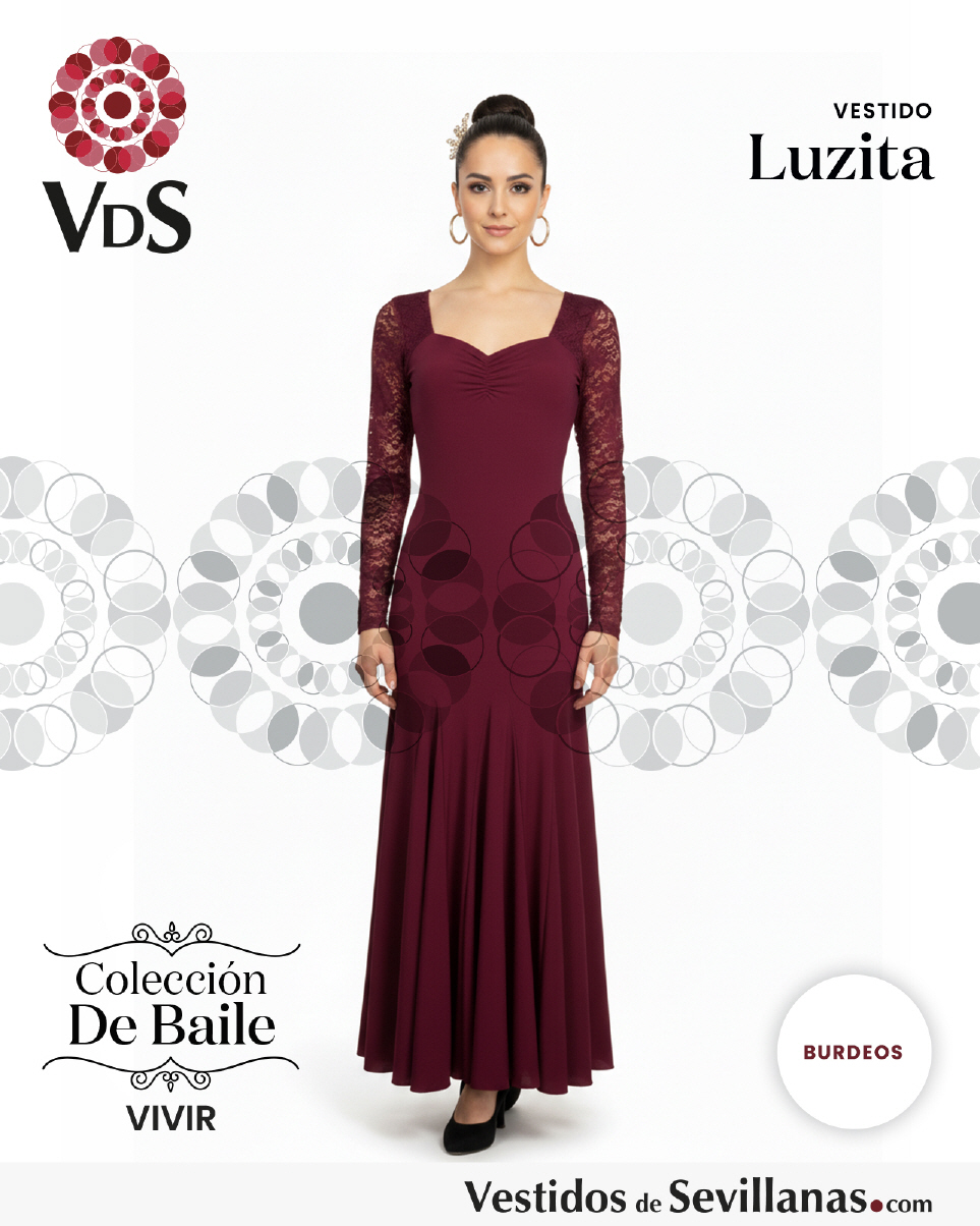 Traje LUZITA para baile manga en encaje elástico, falda con ocho Nesgas (mucho vuelo).