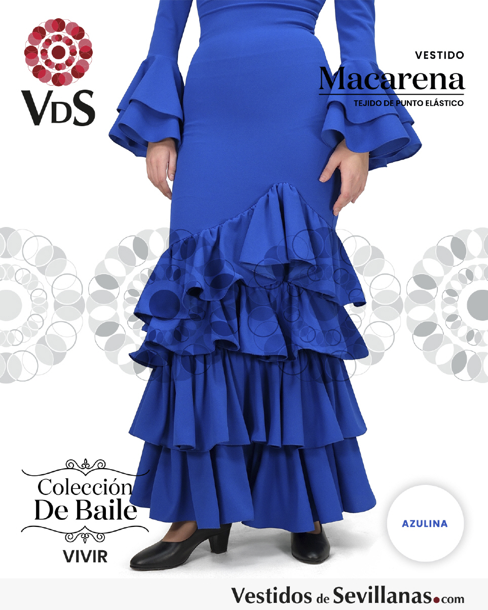 Traje MACARENA para baile ,dos volantes en la manga, falda con cuatro volantes.