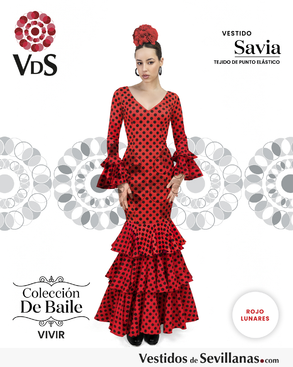 Traje SAVIA para baile un volante en la manga, falda con mucho vuelo tres volantes.