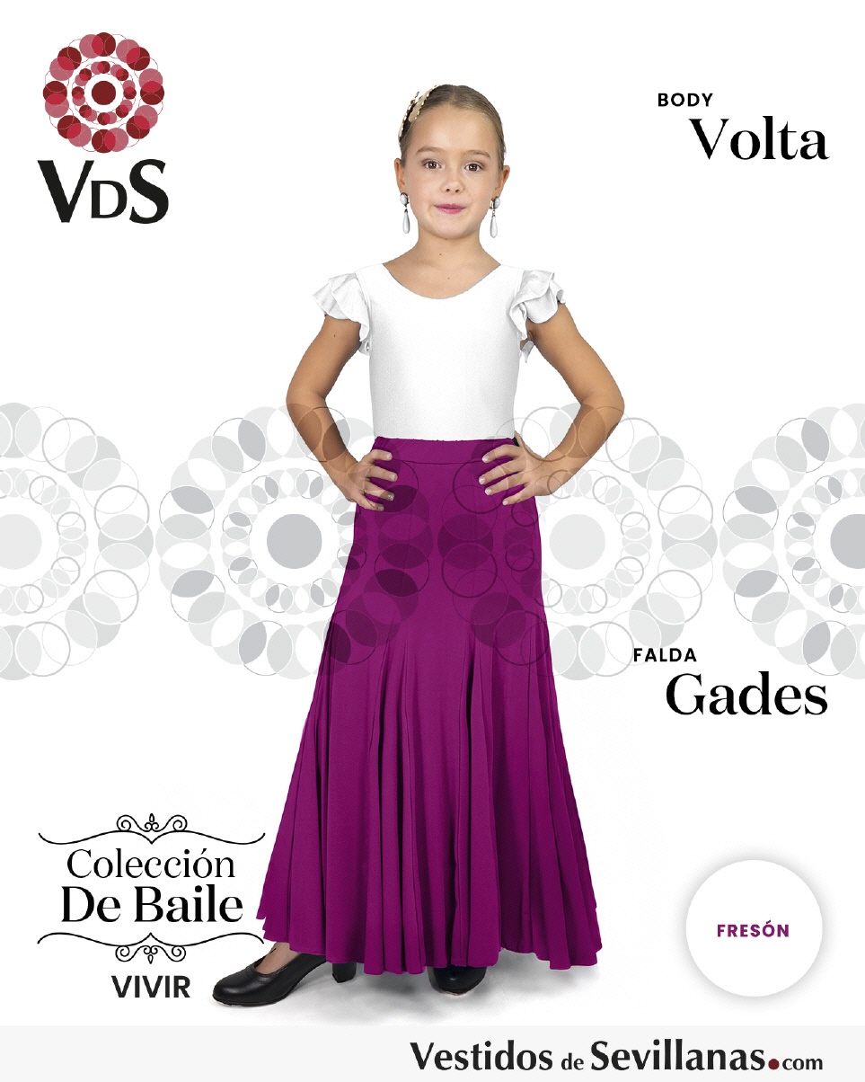 Falda GADES de baile Flamenco. Falda confeccionada con tejido elástico, entallada con 8 Nesgas y mucho vuelo.