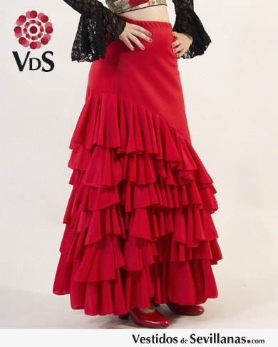 Falda para baile flamenco infantil, seis volantes en cascada. Disponible en rojo y negro.