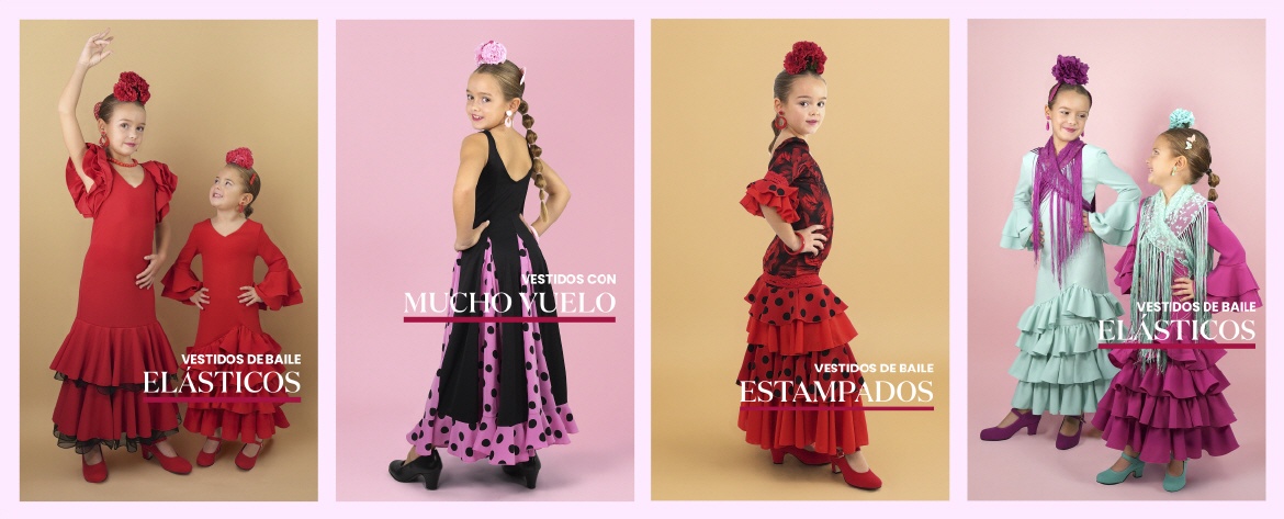 Batas de baile Flamenco infantiles, confeccionadas en tejidos elásticos.